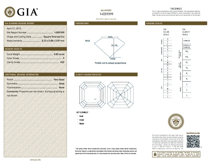 | 0.84 | Asscher | G | VVS2 | GIA | 66.5 | 61 | 5.28x5.20x3.46 | Contact Vendor |