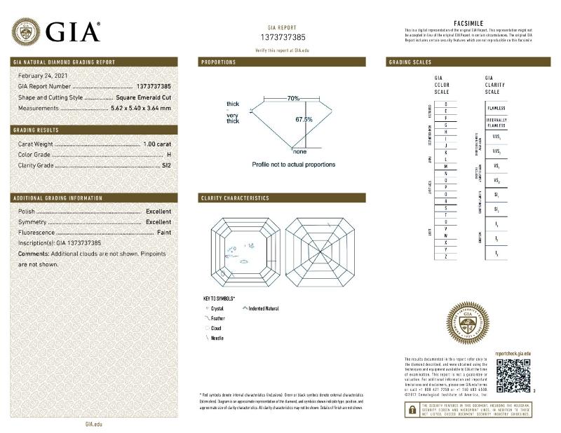 | 1.00 | Asscher | G | SI1 | GIA | 64.0 | 73 | 5.67x5.44x3.48 | Contact Vendor |