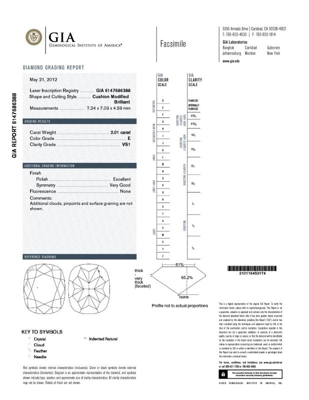 | 2.01 | Cushion | E | VS1 | IGI | 65.0 | 58 | 7.38x7.32x4.76 | Contact Vendor |