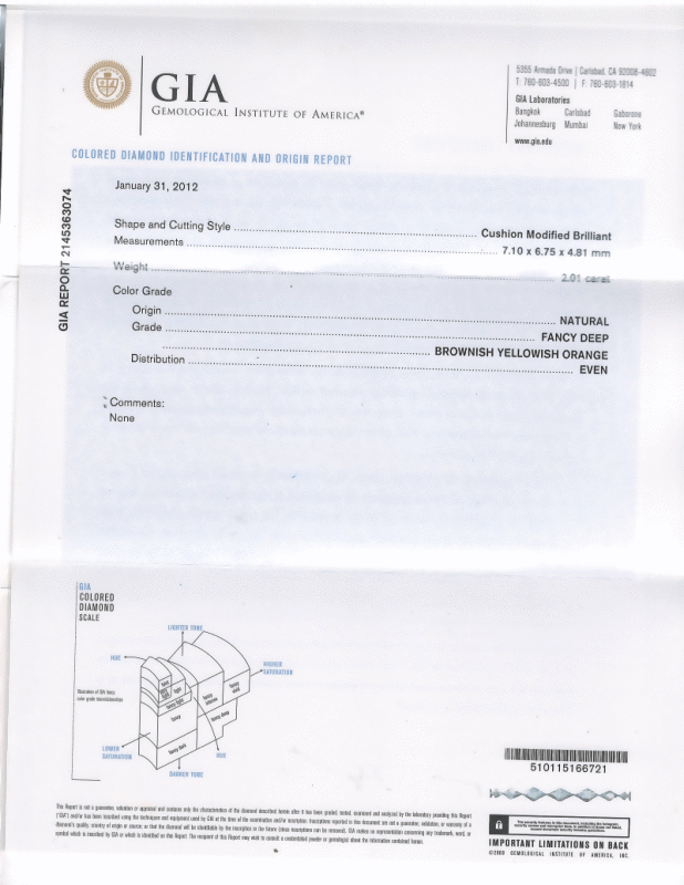 | 2.01 | Cushion | Fancy | N/A | GIA | 7.10x6.75x4.81 | Contact Vendor | ||