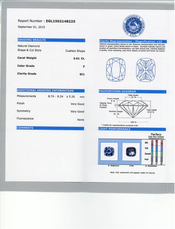 | 3.01 | Cushion | F | VS1 | IGI | 66.4 | 63 | 8.35x8.12x5.39 | Contact Vendor |