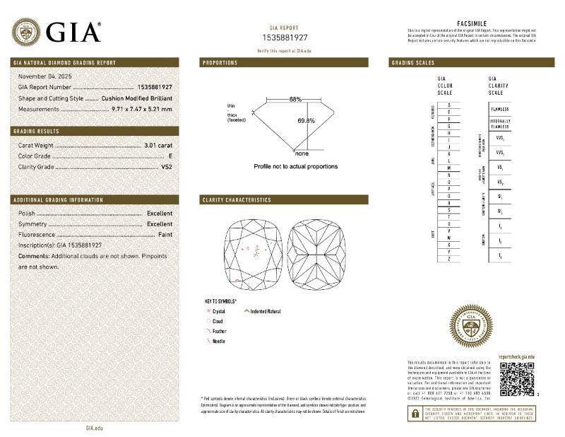 | 3.01 | Cushion | E | VS1 | IGI | 47.0 | 8.57x7.87x5.40 | Contact Vendor | |