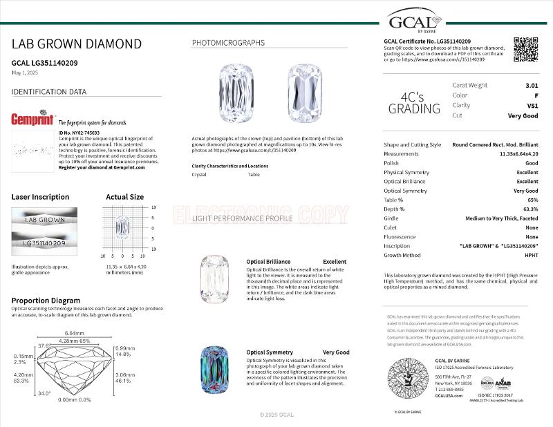 | 3.01 | Cushion | E | VS1 | IGI-NY | 67.0 | 61 | 8.01x7.99x5.35 | Contact Vendor |