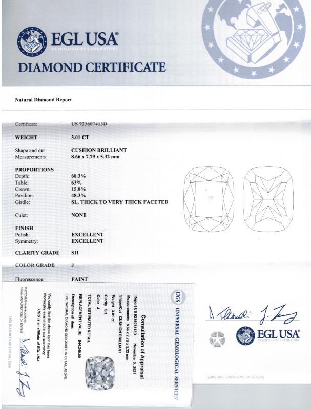 | 3.01 | Cushion | J | SI1 | GIA | 69.3 | 69 | 9.09x6.98x4.84 | Contact Vendor |
