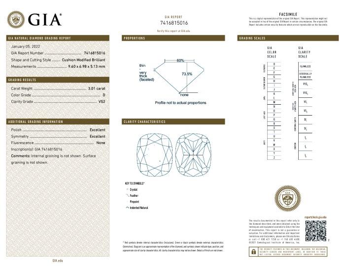 | 3.01 | Cushion | F | VVS2 | IGI | 69.4 | 62 | 9.79x7.38x5.12 | Contact Vendor |