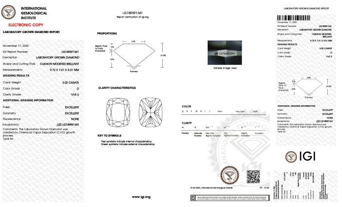 | 3.02 | Cushion | D | VVS2 | IGI | 65.9 | 65 | 8.10x8.10x5.34 | Contact Vendor |