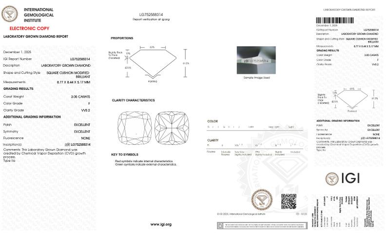| 3.05 | Cushion | F | VVS2 | IGI | 67.8 | 63 | 10.14x7.55x5.12 | Contact Vendor |