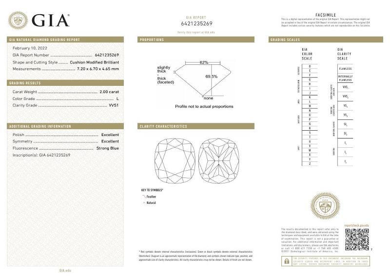 | 2.00 | Cushion | F | VVS2 | IGI | 65.2 | 62 | 7.47x7.29x4.75 | Contact Vendor |