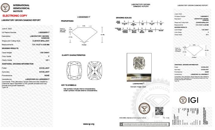 | 1.50 | Cushion Brilliant | E | VS1 | IGI | 69.5 | 58 | 8.06x5.73x3.98 | Contact Vendor |