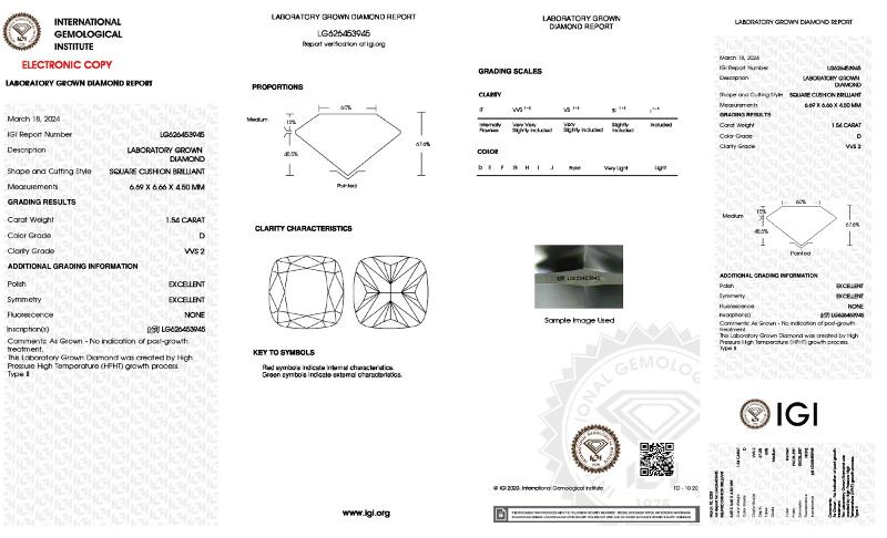 | 1.54 | Cushion Brilliant | D | VVS2 | IGI | 67.6 | 60 | 6.69x6.66x4.50 | Contact Vendor |