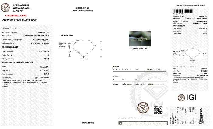 | 2.00 | Cushion Brilliant | E | VVS2 | IGI | 67.2 | 62 | 8.80x6.95x4.67 | Contact Vendor |