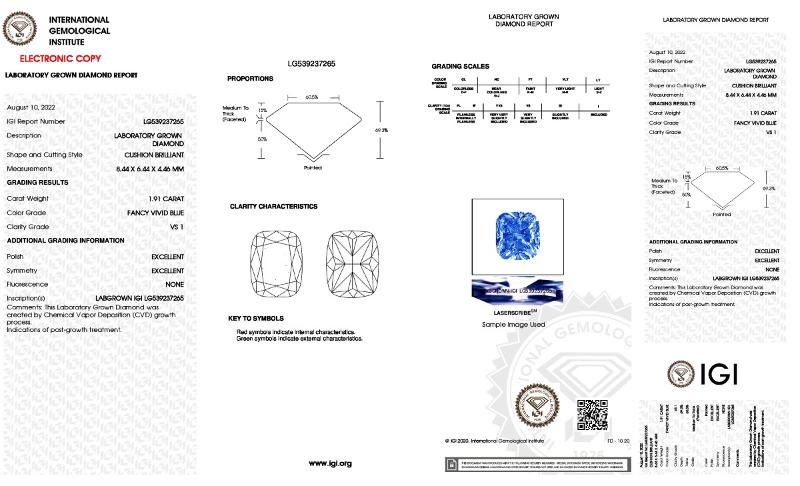 | 1.91 | Cushion Brilliant | Fancy | VS1 | IGI | 69.3 | 60 | 8.44x6.44x4.46 | Contact Vendor |