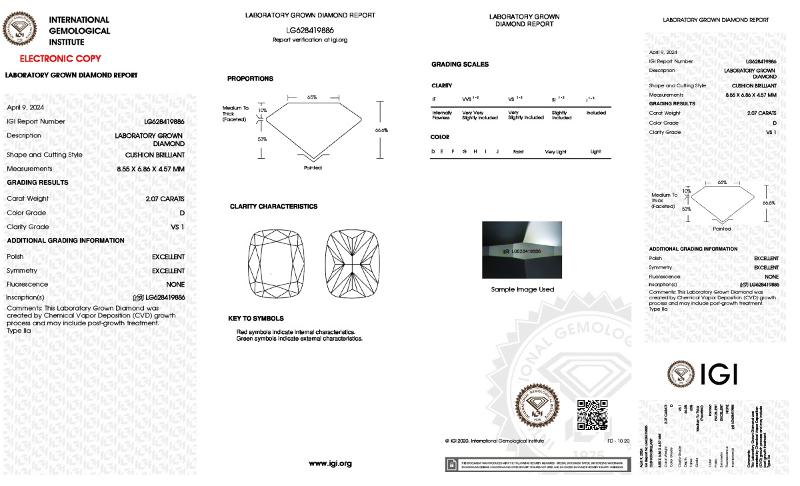 | 2.07 | Cushion Brilliant | D | VVS2 | IGI | 66.3 | 63 | 9.01x6.61x4.38 | Contact Vendor |