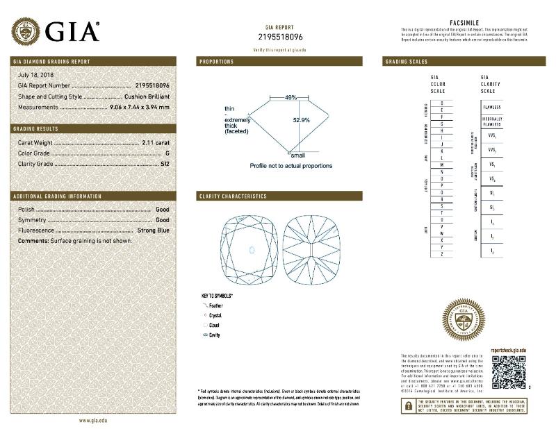 | 2.11 | Cushion Brilliant | G | SI2 | GIA | 52.9 | 49 | 9.06x7.44x3.94 | Contact Vendor |