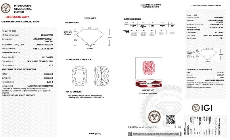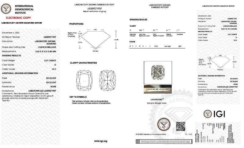 | 3.01 | Cushion Brilliant | E | VS1 | IGI | 60.9 | 52 | 10.53x7.93x4.83 | Contact Vendor |
