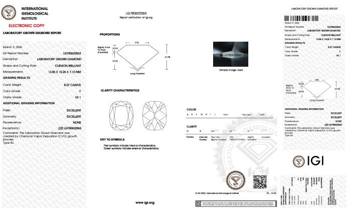 | 15.09 | Cushion Brilliant | F | VVS2 | IGI | 63.9 | 69 | 18.28x12.84x8.20 | Contact Vendor |