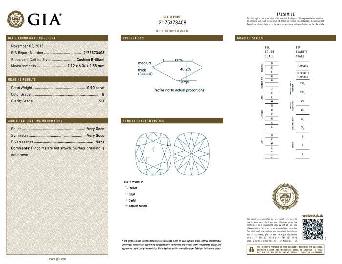 | 0.90 | Cushion Brilliant | G | SI1 | GIA | 40.2 | 60 | 7.12x6.34x2.55 | Contact Vendor |