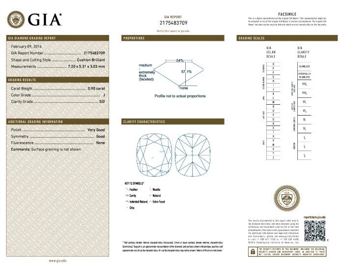 | 0.90 | Cushion Brilliant | J | SI2 | GIA | 57.1 | 54 | 7.20x5.31x3.03 | Contact Vendor |