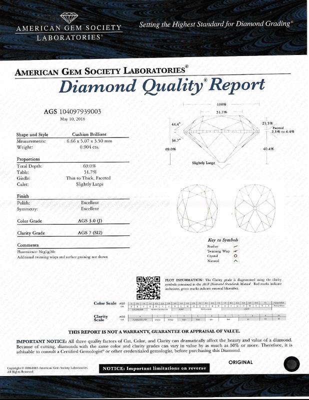 | 0.90 | Cushion Brilliant | J | SI2 | AGS | Contact Vendor | |||