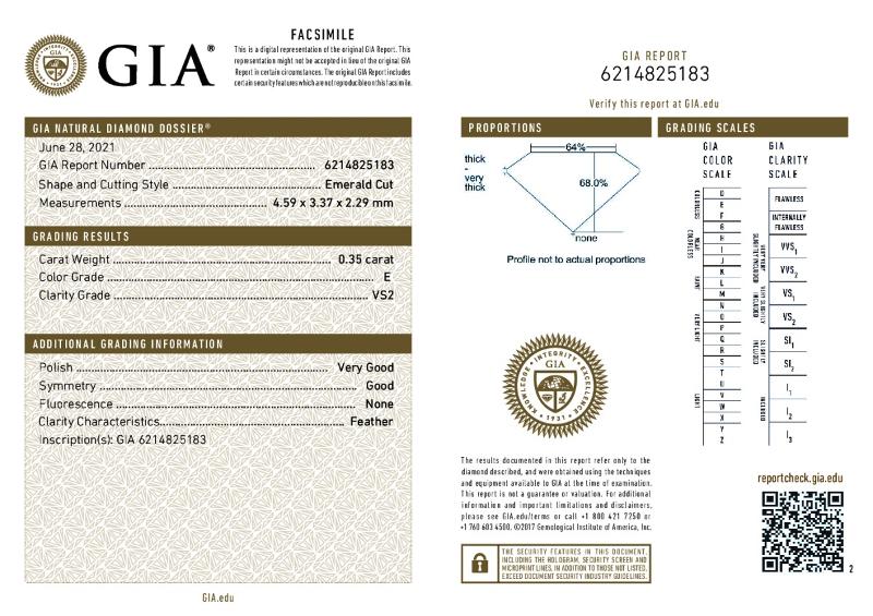 | 0.35 | Emerald | E | VS2 | GIA | 68.0 | 64 | 4.59x3.37x2.29 | Contact Vendor |