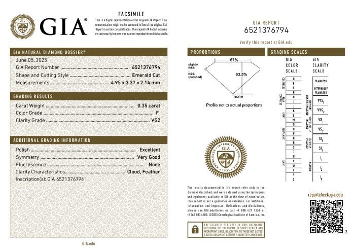 | 0.35 | Emerald | F | VS2 | GIA | 63.5 | 67 | 4.95x3.37x2.14 | Contact Vendor |