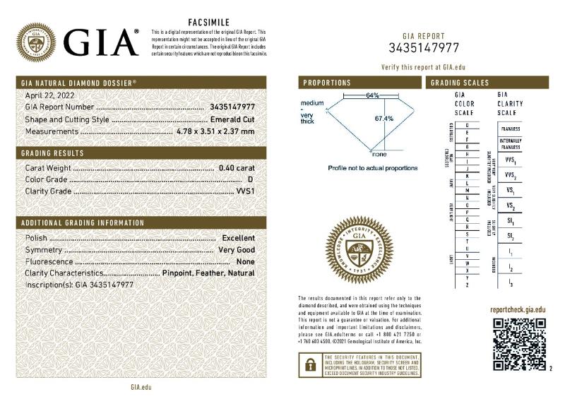 | 0.40 | Emerald | D | VVS2 | GIA | 67.9 | 69 | 4.80x3.52x2.39 | Contact Vendor |