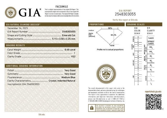 | 0.40 | Emerald | I | VVS2 | GIA | 68.5 | 68 | 4.69x3.53x2.42 | Contact Vendor |