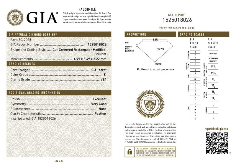 | 0.31 | Radiant | E | VS2 | GIA | 67.5 | 68 | 4.64x3.52x2.38 | Contact Vendor |