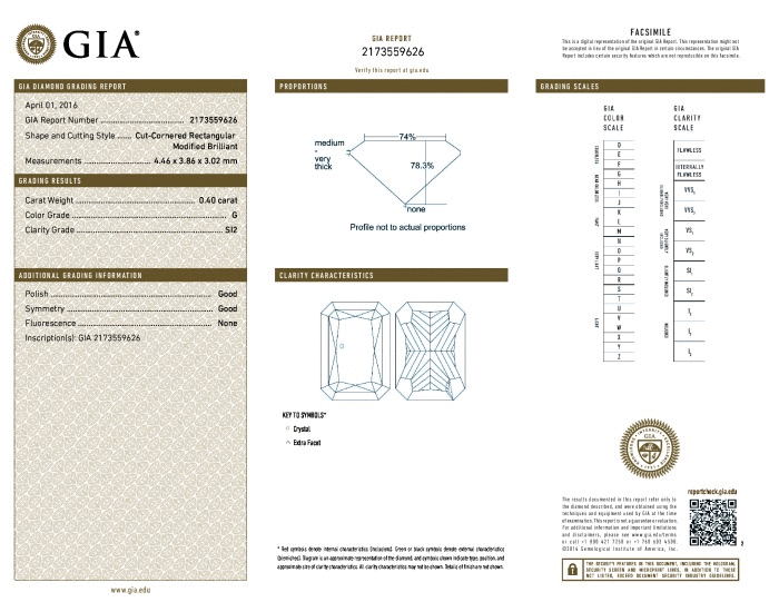 | 0.40 | Radiant | F | SI1 | GIA | 62.4 | 63 | 5.05x3.88x2.42 | Contact Vendor |