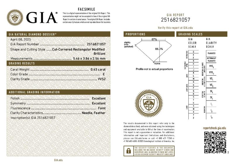 | 0.43 | Radiant | E | VVS2 | GIA | 61.6 | 66 | 5.52x3.84x2.36 | Contact Vendor |