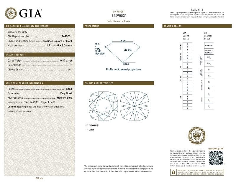 | 0.47 | Radiant | E | I1 | GIA | 82.5 | 82 | 4.36x3.96x3.27 | Contact Vendor |