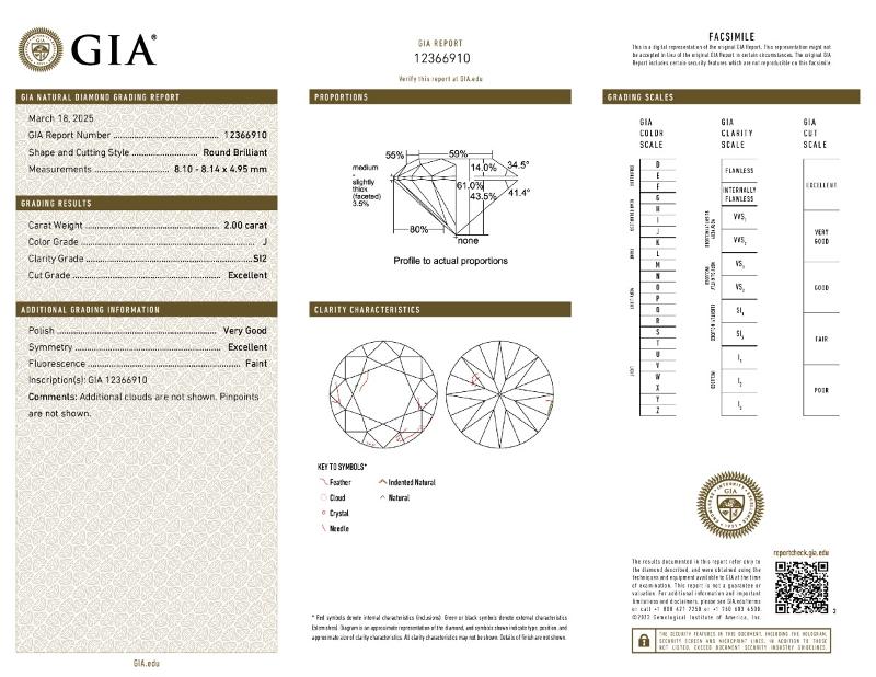 | 2.00 | Round | J | SI2 | GIA | 61.0 | 59 | 8.10x8.14x4.95 | Contact Vendor |