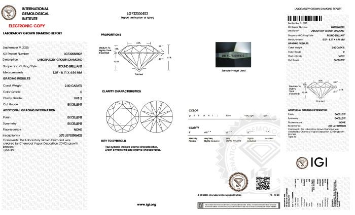 | 2.00 | Round | E | VS1 | IGI | 63.3 | 58 | 7.92x7.98x5.03 | Contact Vendor |
