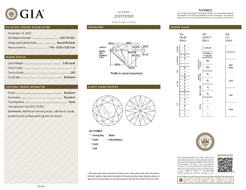 | 2.00 | Round | G | I1 | GIA | 62.5 | 58 | 7.97x8.02x5.00 | Contact Vendor |