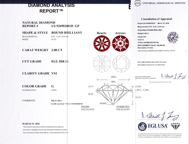 | 2.00 | Round | G | VS1 | EGLUSA | 58.5 | 60 | 8.30x8.22x4.84 | Contact Vendor |