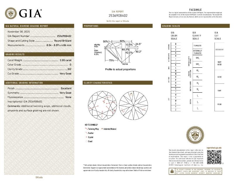 | 2.00 | Round | G | VVS2 | IGI | 60.2 | 60 | 8.14x8.16x4.90 | Contact Vendor |