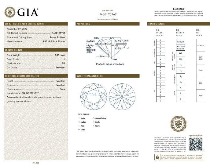 | 2.00 | Round | L | SI2 | GIA | 62.1 | 59 | 8.00x8.05x4.99 | Contact Vendor |
