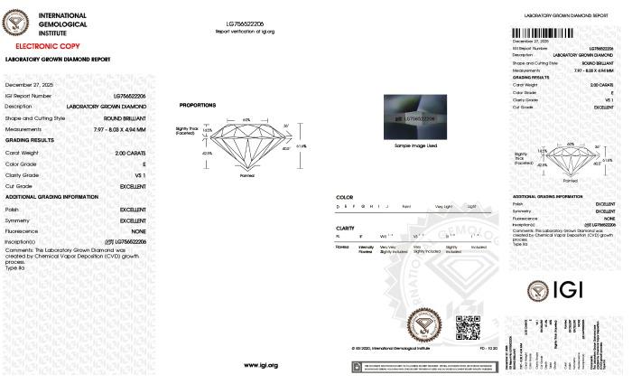 | 2.00 | Round | E | VS1 | IGI | 61.6 | 60 | 7.97x8.03x4.94 | Contact Vendor |