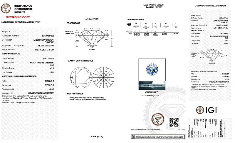 | 2.00 | Round | Fancy | VS1 | IGI | 60.9 | 59 | 8.07x8.13x4.94 | Contact Vendor |