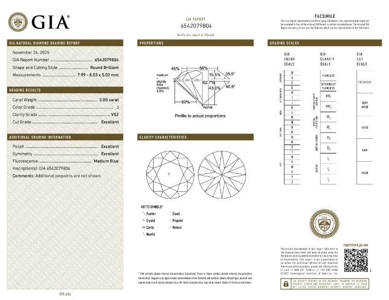 | 2.00 | Round | J | VS2 | GIA | 62.7 | 56 | 7.99x8.03x5.02 | Contact Vendor |