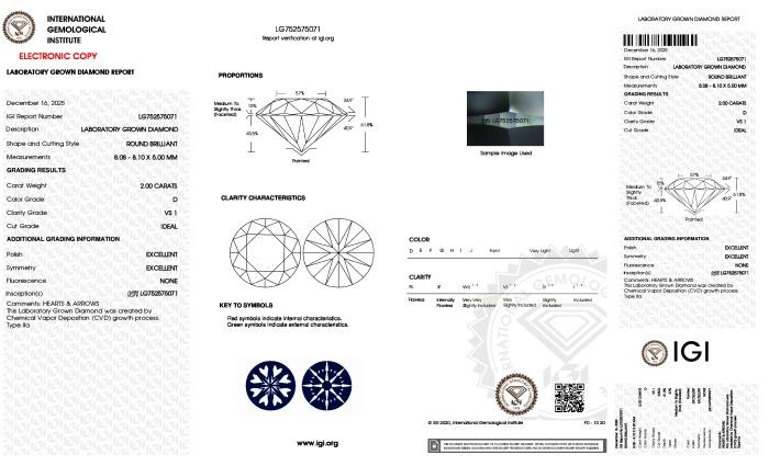 | 2.00 | Round | D | VS1 | IGI | 61.8 | 57 | 8.08x8.10x5.00 | Contact Vendor |