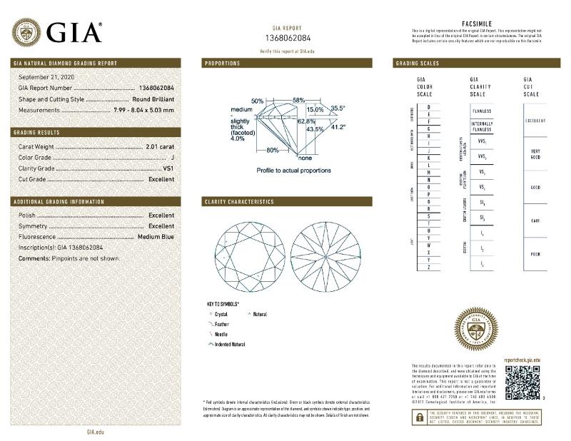 | 2.01 | Round | J | VS1 | GIA | 62.8 | 58 | 7.99x8.04x5.03 | Contact Vendor |