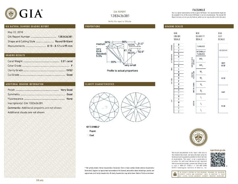| 2.01 | Round | F | VS2 | IGI | 59.4 | 60 | 8.16x8.21x4.87 | Contact Vendor |