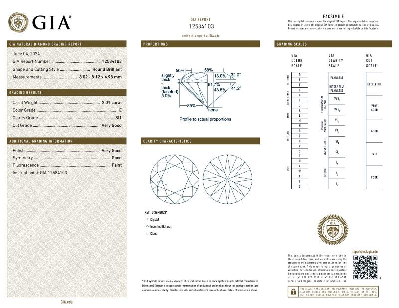 | 2.01 | Round | E | VS1 | IGI | 62.1 | 58 | 8.05x8.08x5.01 | Contact Vendor |