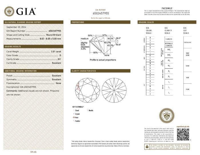| 2.01 | Round | D | SI1 | GIA | 62.2 | 57 | 8.02x8.05x5.00 | Contact Vendor |