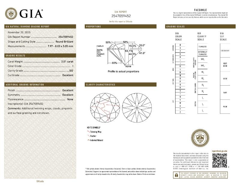 | 2.01 | Round | E | VS2 | IGI | 60.4 | 59 | 8.12x8.16x4.92 | Contact Vendor |