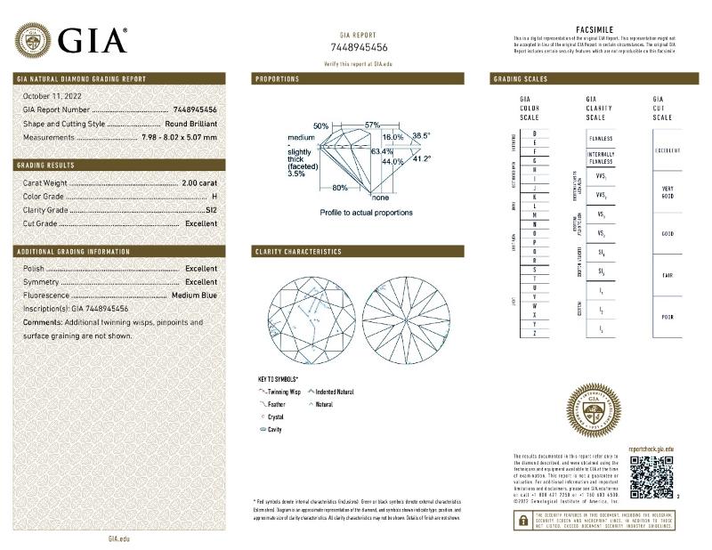 | 2.00 | Round | E | VS2 | GIA | 63.4 | 56 | 8.04x7.94x5.07 | Contact Vendor |