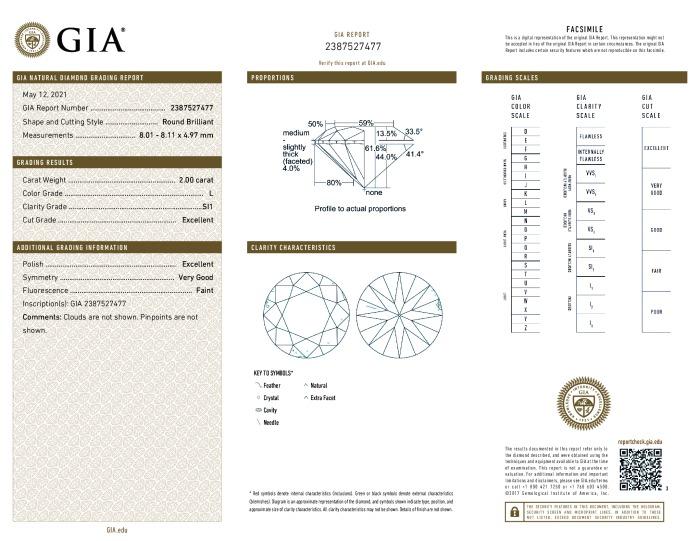 | 2.00 | Round | L | SI1 | GIA | 61.6 | 59 | 8.01x8.11x4.97 | Contact Vendor |