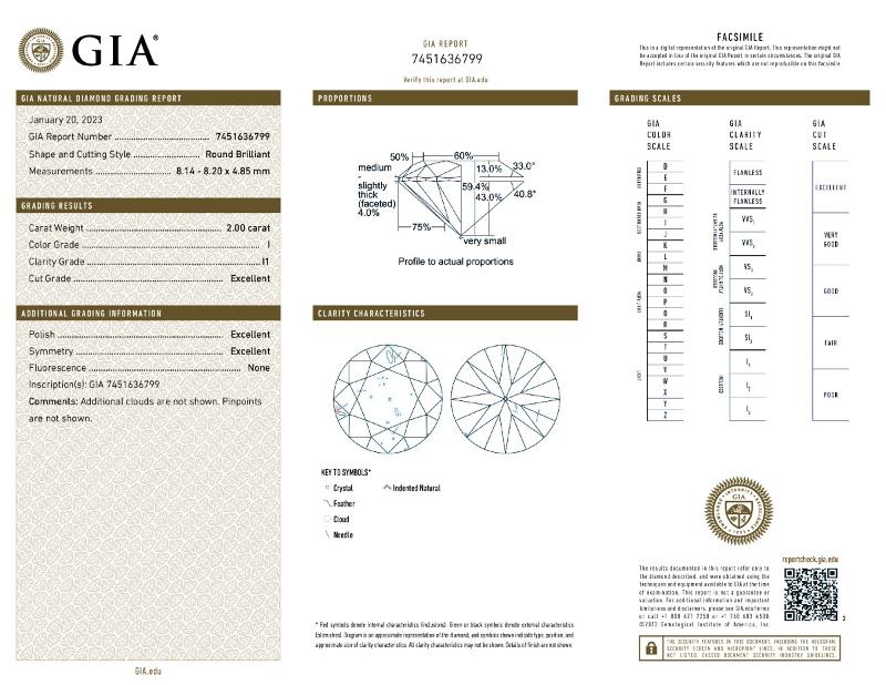 | 2.00 | Round | I | I1 | GIA | 59.4 | 60 | 8.14x8.20x4.85 | Contact Vendor |