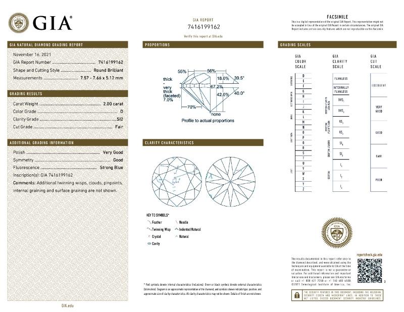 | 2.00 | Round | N | VS2 | GIA | 64.3 | 55 | 7.80x7.88x5.04 | Contact Vendor |